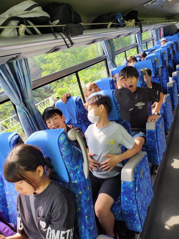 2024年6月13日 08時05分熱塩小学校の皆さんと合流して米沢市の道の駅に向かっています。