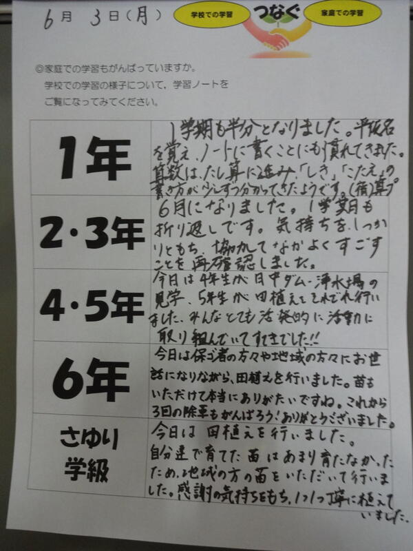 6/3 学習をつなぐ 田植えお世話になりました。