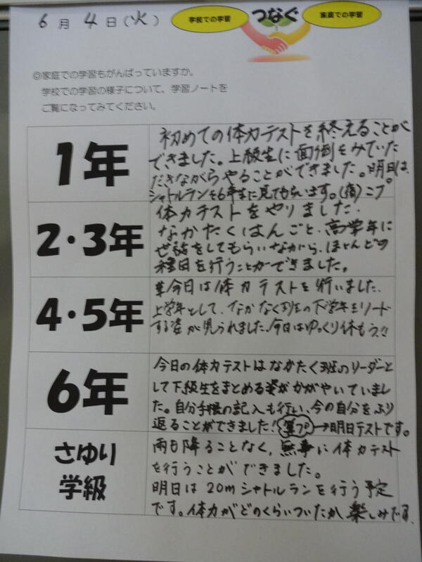 6/4 学習をつなぐ 体力テスト
