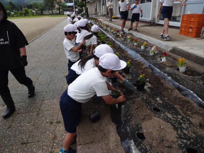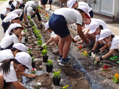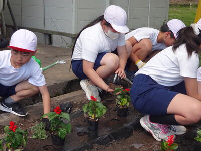 花壇に花の苗植えをしました。