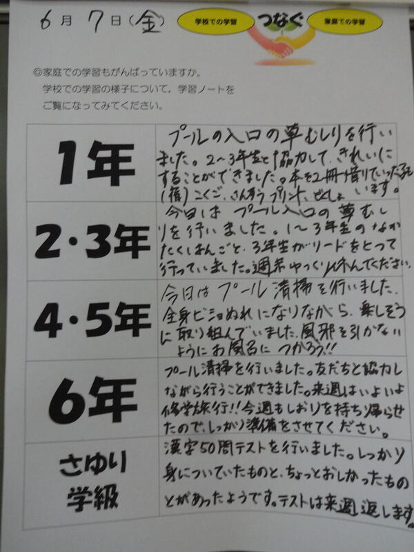 2024年6月6日 17時04分今日の6校時目は6年生が