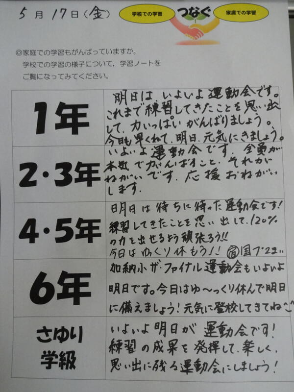 2024年5月17日 16時42分明日はいよいよ加納小学校