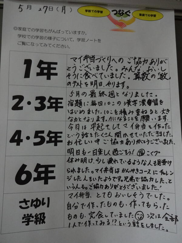 5/27 学習をつなぐ マイ弁当ありがとうございました!