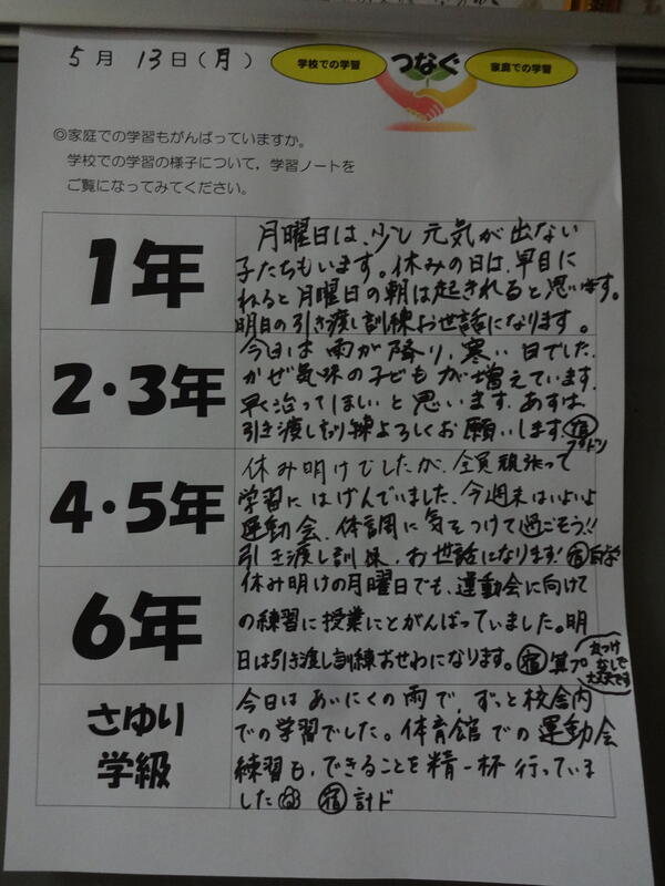 5/14 学習をつなぐ 引き渡し訓練 鼓笛練習