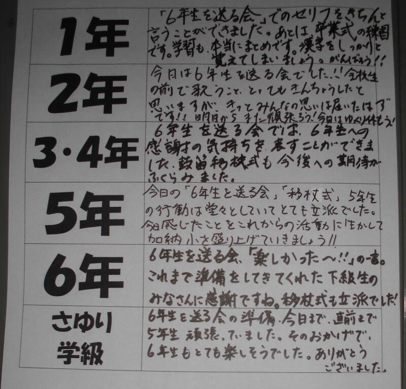 今日の会で、楽しかった6年生との思い出がさらに増えました。