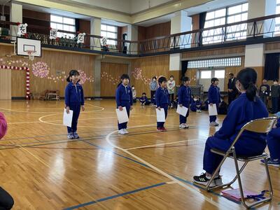 1年生から5年生が学級ごとに6年生への感謝の気持ちを伝えました。
