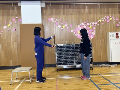 2024年3月8日 17時15分6校時に3年生から5年生で、卒業式の式場準備をしました。