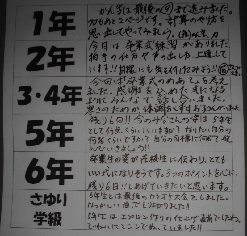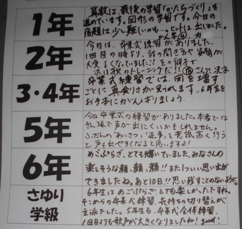 元気に卒業式・修了式を迎えられますよう、体調管理をよろしくお願いします。