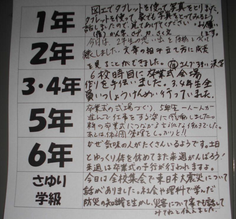 子ども達は学校で元気に過ごしながらも、震災のことを心にとめて過ごしている様子でした。
