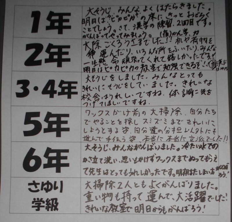 1年間お世話になった教室を、感謝の気持ちを込めてきれいにしました。