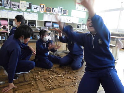 2024年2月2日 16時37分明日は節分ということで、代表委員会が中心となって豆まき集会をしました。