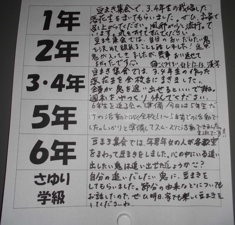 6年生の保護者の皆様、お忙しいところにも関わらず、お越しいただきましてありがとうございました。子ども達にとって、すてきな思い出ができました。