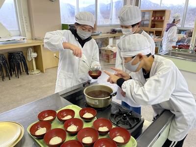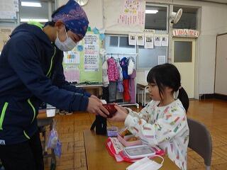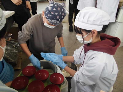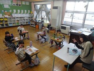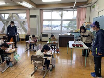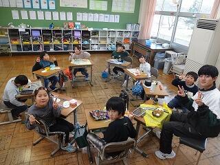 笑顔の輪が、各学級で咲いていました。また、6年生から「汁もち」が振る舞われました。