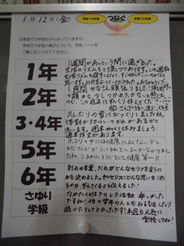 2024年1月12日 16時58分3学期の始まりの1週間が終わりました。