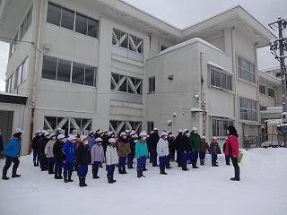 災害は、いつ発生するか分かりません。そこで、今回は、積雪時の避難の仕方に重点を置いた訓練を実施しました。