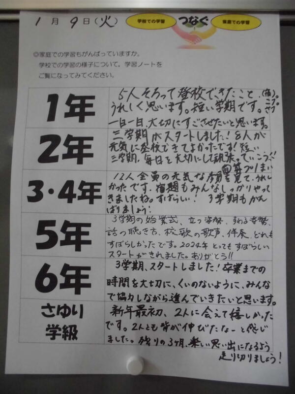 2024年1月9日 10時49分本日より、令和5年度、3学期の学校生活がはじまりました。