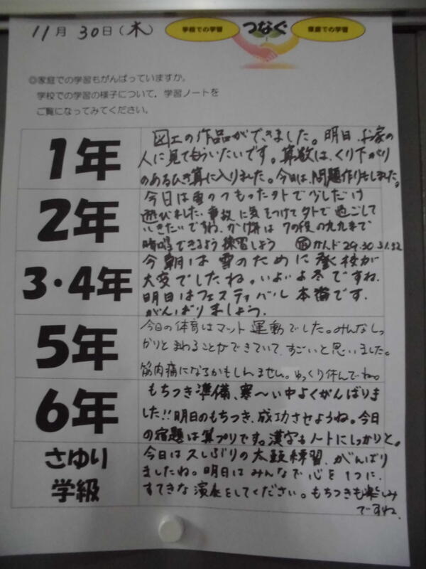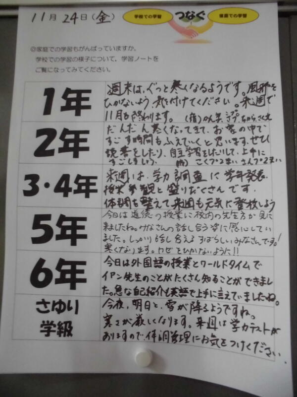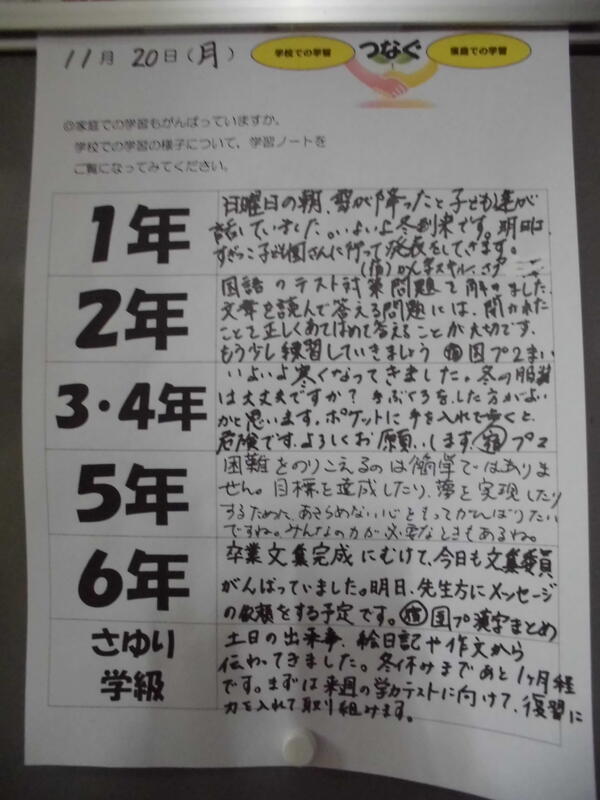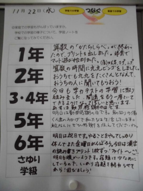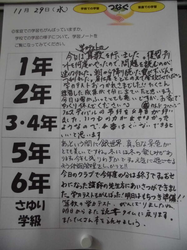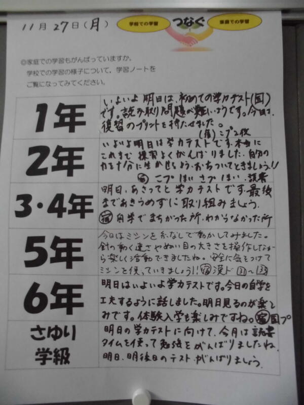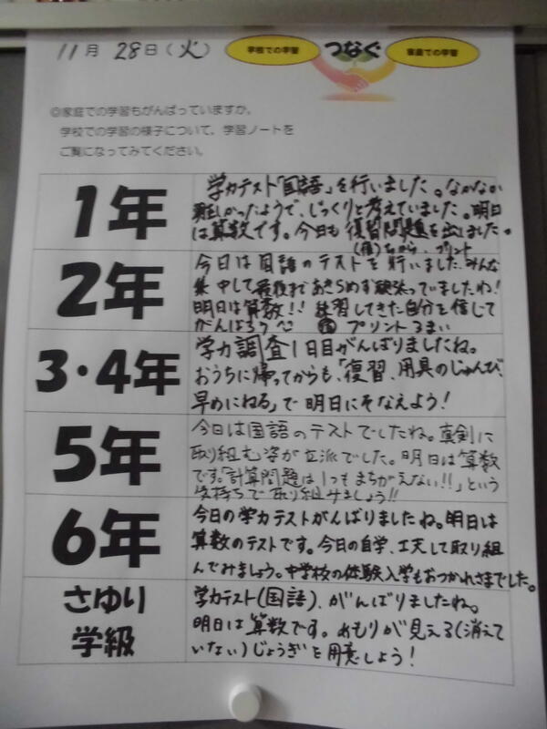 2023年11月27日 16時14分明日とあさっては学力調査です。