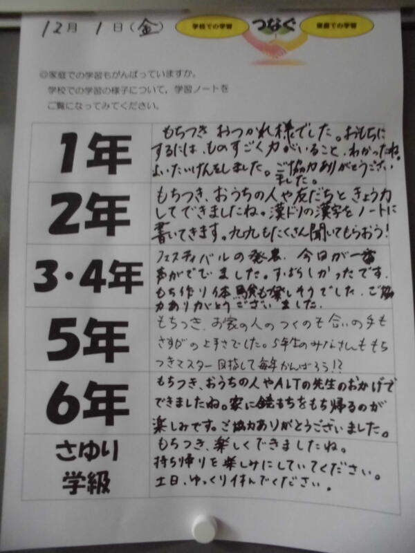 2023年12月1日 18時28分授業参観ではもちつきにご協力いただき
