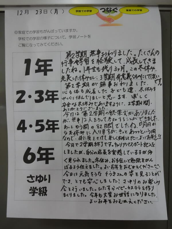 それぞれのお子さんにとっても、今年一年が、すてきな一年になることを、心より願っています。
