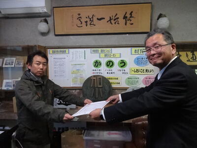 2025年1月17日 09時58分長年にわたる本校PTA活動への功績が認められたことによる耶麻地区PTA連絡協議会からの感謝状の伝達が行われました。
