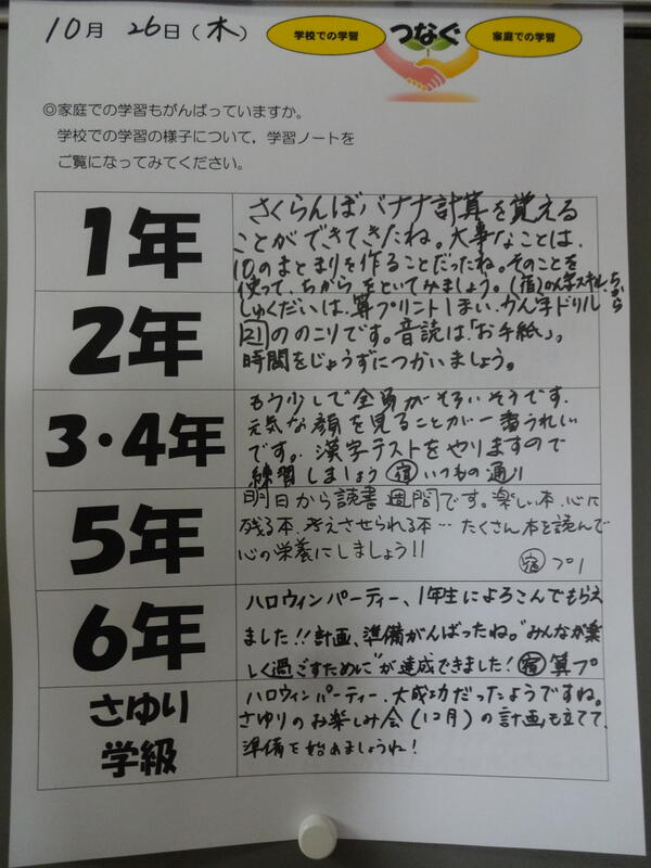 10/26 学習をつなぐ  1・6年ハロウィンパーティー