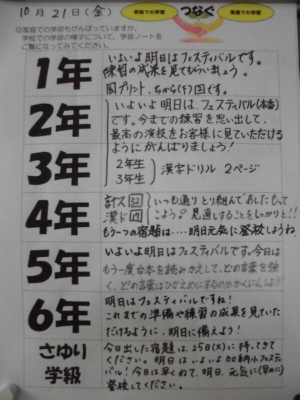 2022年10月21日 17時34分明日はいよいよ加納小フェスティバルです。