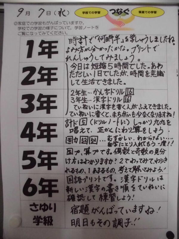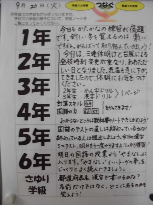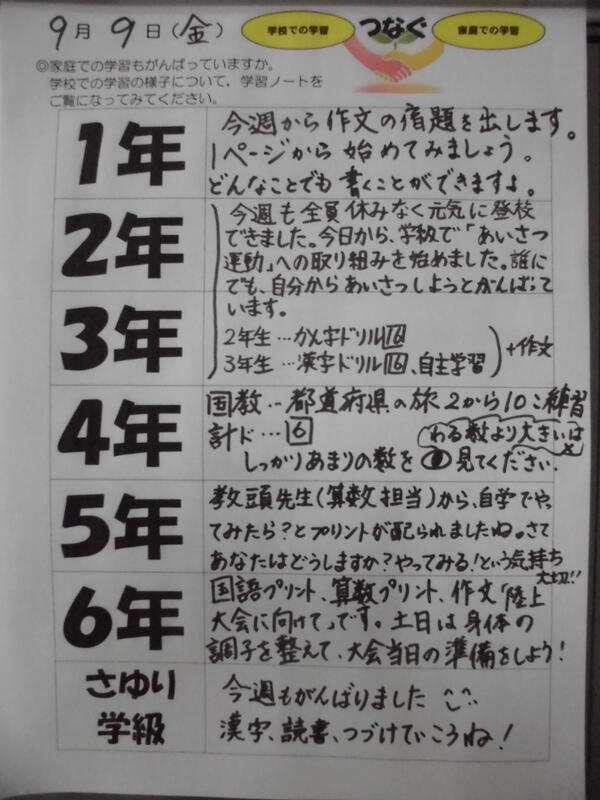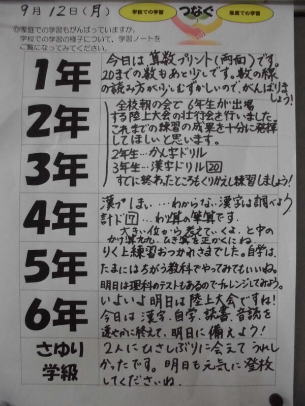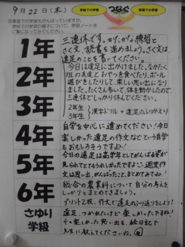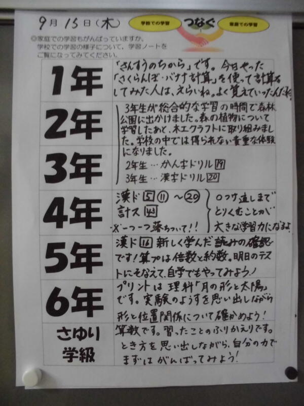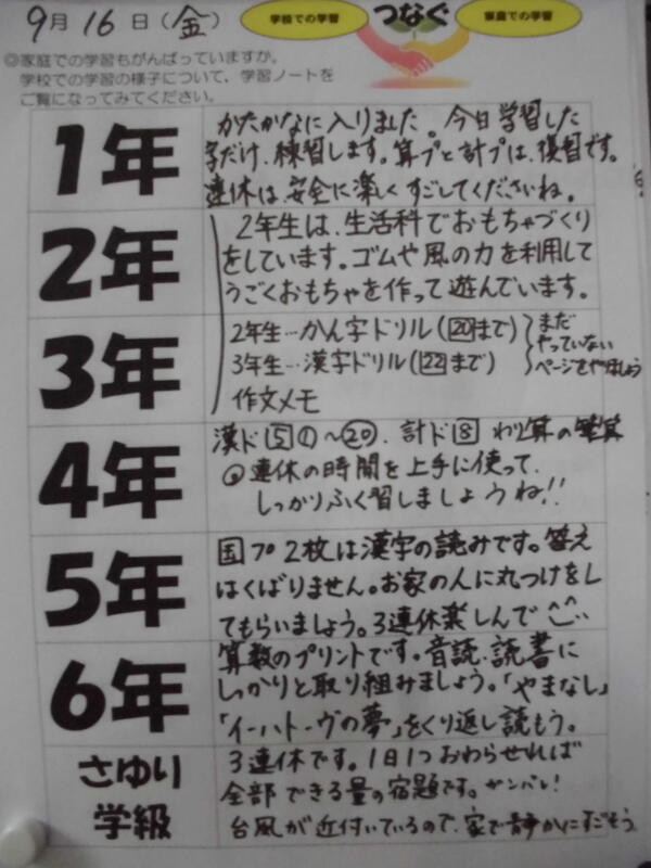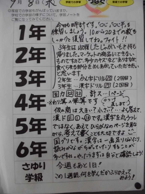 2022年9月8日 17時02分今日は、5年生から4年生に、