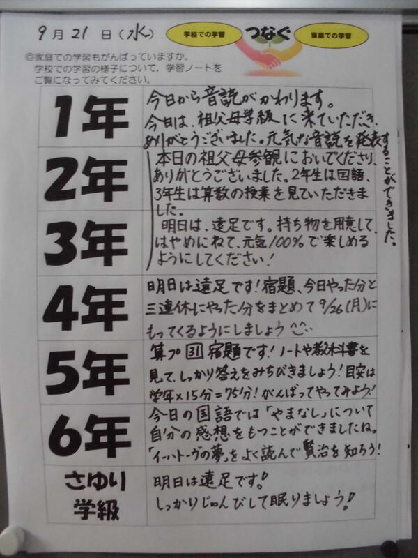 2022年9月21日 17時04分今日は祖父母参観お世話になりました。
