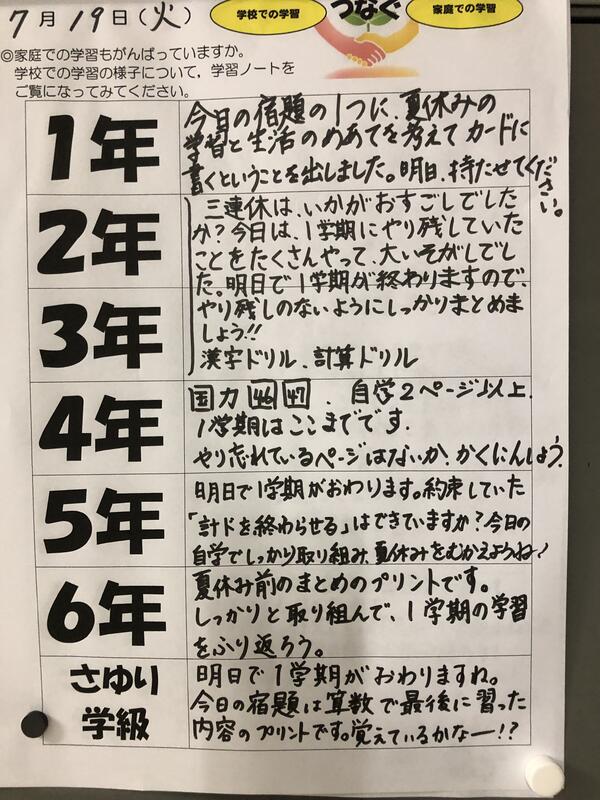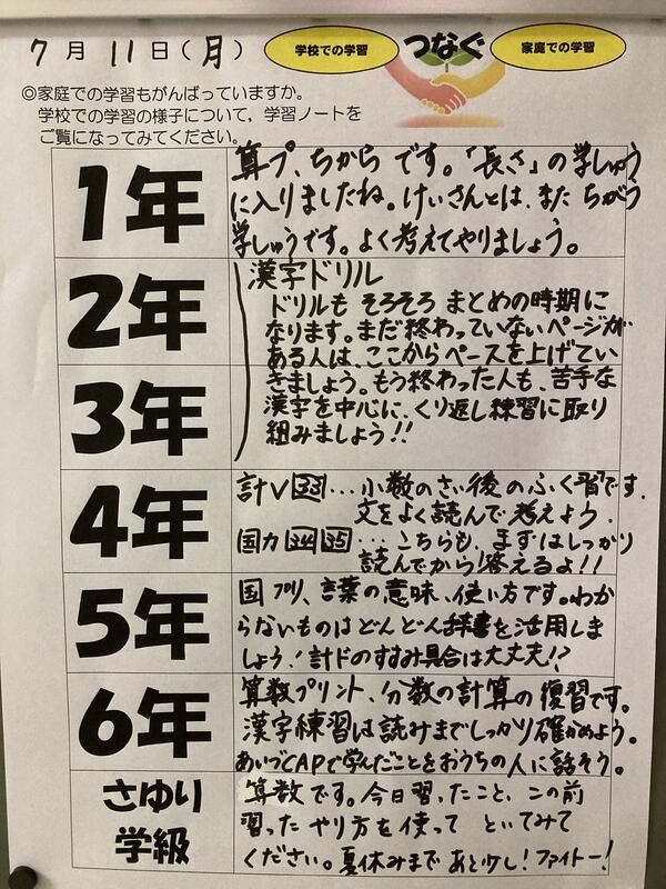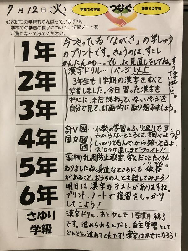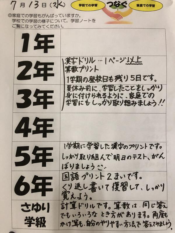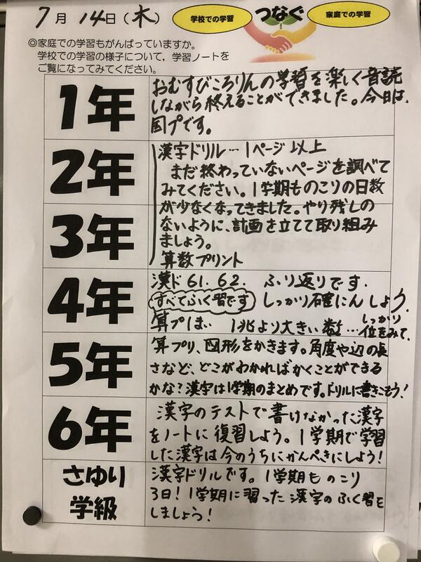 ドリルのまとめやテストにむけた課題もあるようです。頑張って、楽しい夏休みをむかえたいですね。