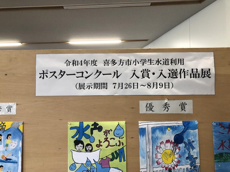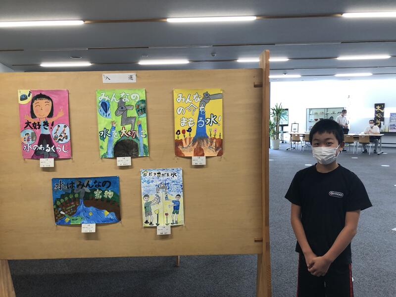 2022年7月26日 17時30分市役所のホールに8/9まで展示されています。加納小学校からは4名が入選し、展示されています。
