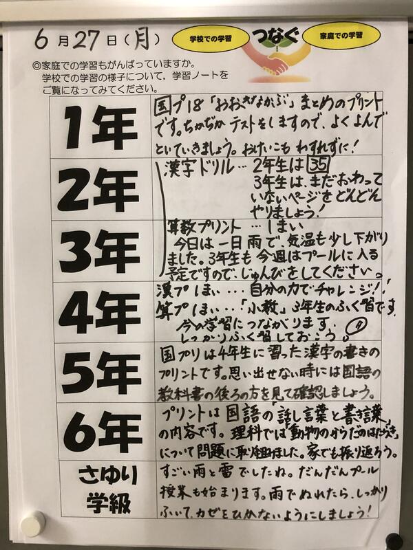 2022年6月27日 18時57分今日は登下校について送迎をいただき、ありがとうございました。