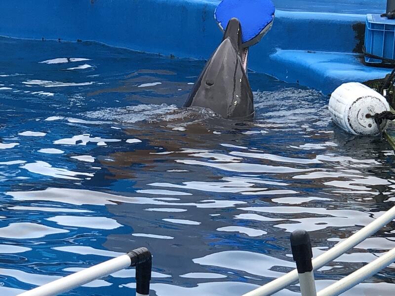 2022年6月8日 12時56分イルカショーがこれから13時から始まります。イルカのパフォーマンス、楽しみです。