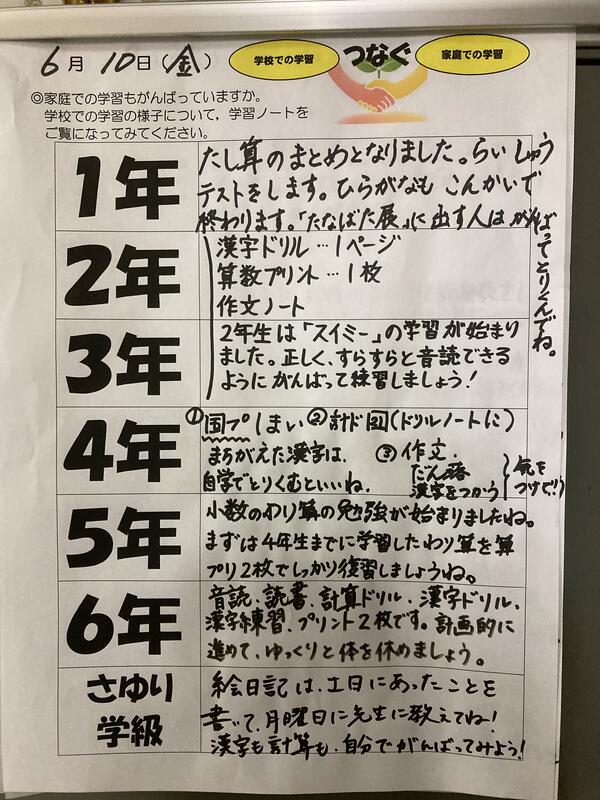 意欲的に学ぶ姿、週末の家庭学習でも期待しております。