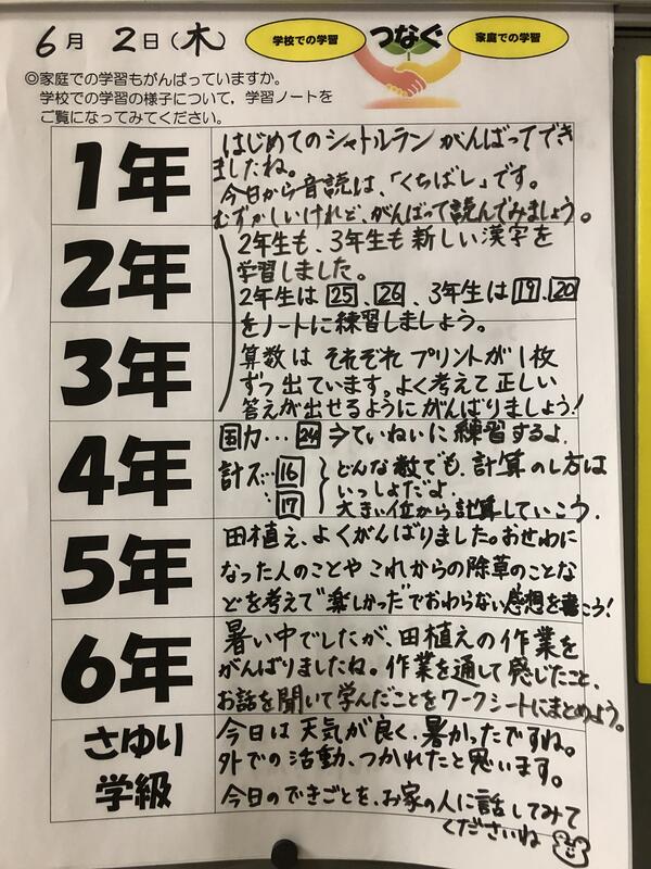 今日は、5、6年生は田植えでした。一生懸命でした。疲れたと思います。