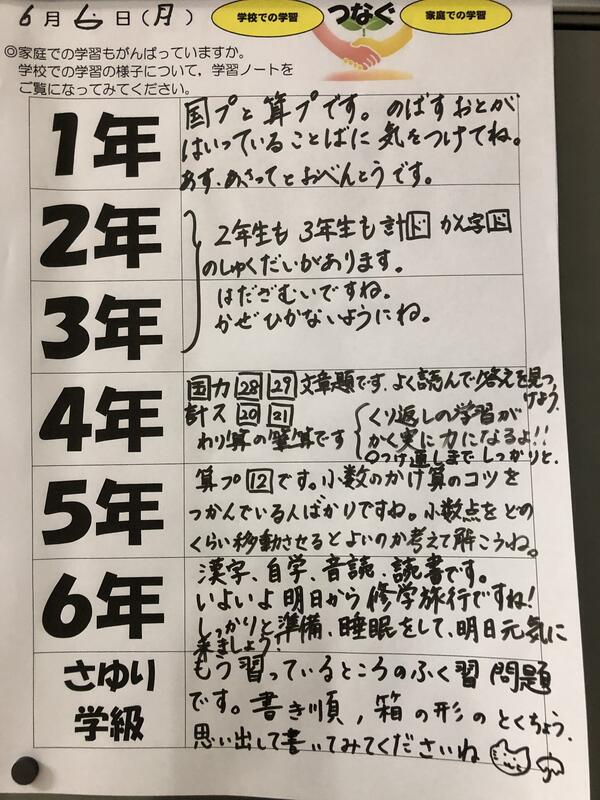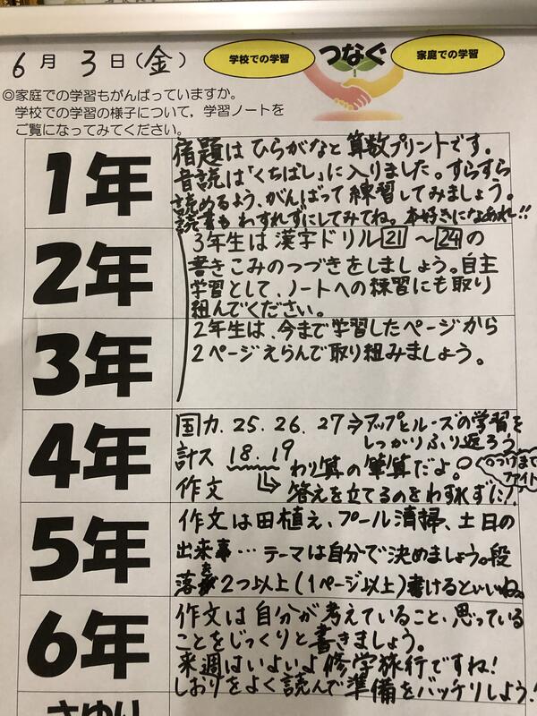 今週は、熊の情報がありました。自家用車での迎えに対応いただき、ありがとうございました。この週末も、心配されますので、ご注意願います。
