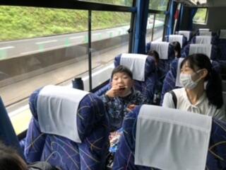 バスでは。今自己紹介が行われました。みんなしっかり、はっきり、修学旅行への気持ちを話しています。準備をして今日を迎えたのでしょう。うれしいです。