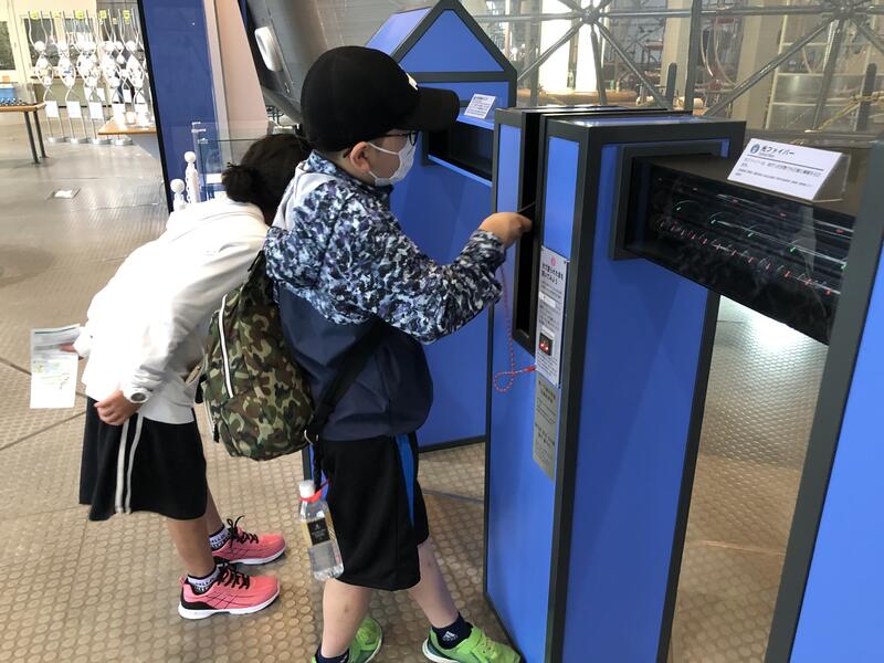 科学館の展示を見たり、試したりしながら磁石のはたらきなどについて実感しています。
