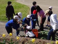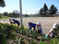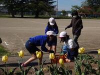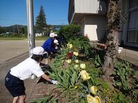 自慢の一つは花壇です。昨年みんなで植えたチューリップが,今年も見事に咲きました。