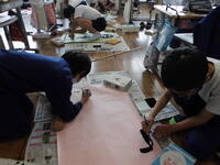 5年生,6年生が一文字ずつていねいに一生懸命にスローガン掲示をつくりました。