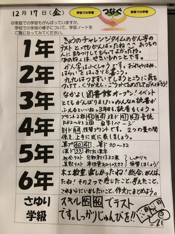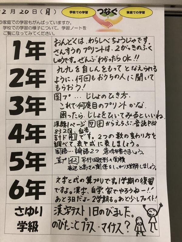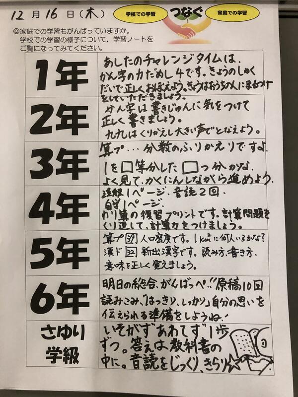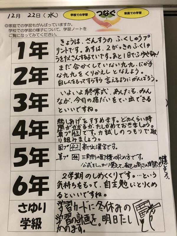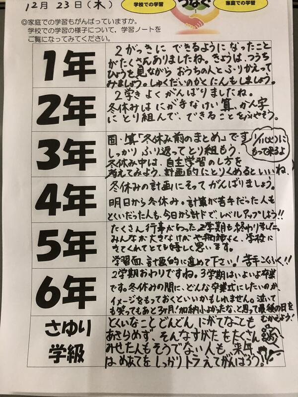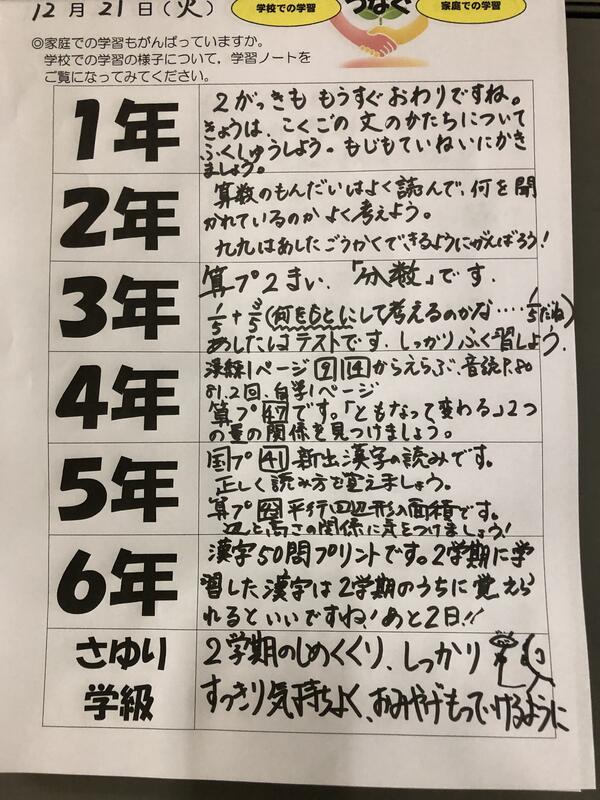 明日は、2学期終業式です。今日のお家での学習にも、気合いが入っている、といいです。
