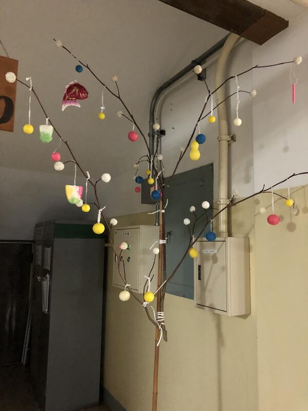 はじめは飾りつけを2年生が見せて、次は1年生です。だんごづくりも、飾りつけも、やさしく教える2年生に、しっかり教わる1年生でした。