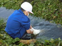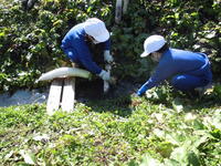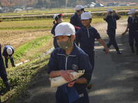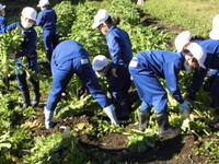 収穫した3年生も,「こんなにたくましくなったのか」と感心するほど,力強くだいこんを抜き,川の水で一本ずつ洗うのも,しっかりと活動しています。水は冷たいですが,だれひとり気にせず,どんどん,どんどん土まみれのだいこんがきれいになっていきました。農業科の学習が初めての3年生。春は,畑に出ても,次にやることが見つけられなかったり,作業もなかなか始められなかったりでした。今は違います。「これも運びますか」「ここで洗っていいですか」と自分から農業支援員の先生方に声をかけて,活動しています。たくましい姿が育っている,とうれしくなりました。