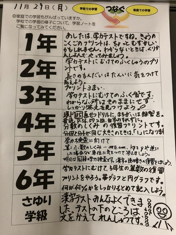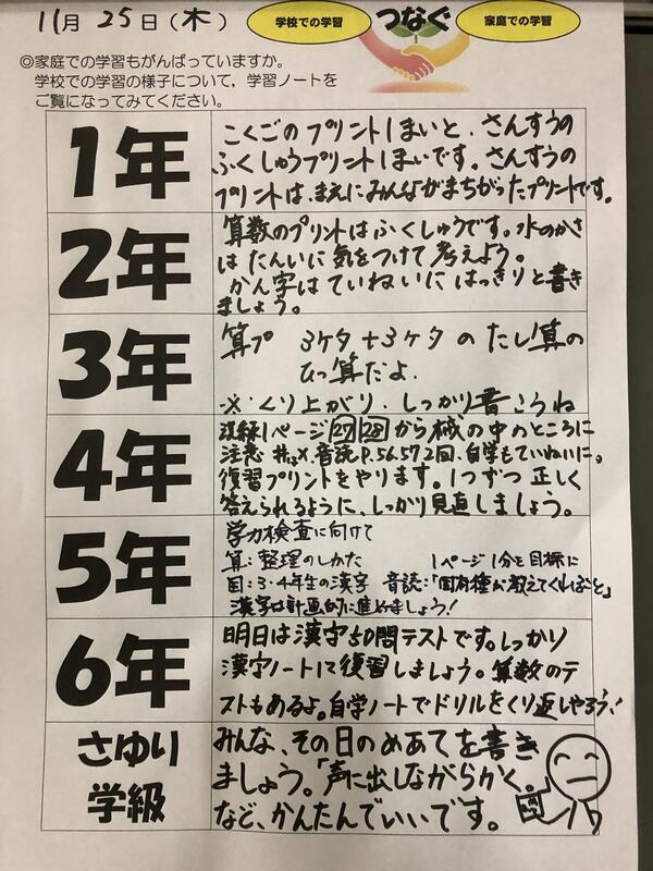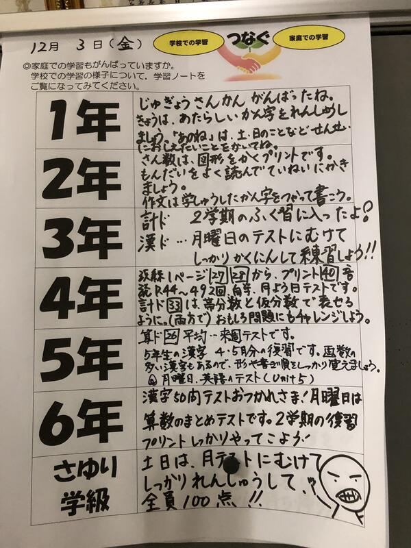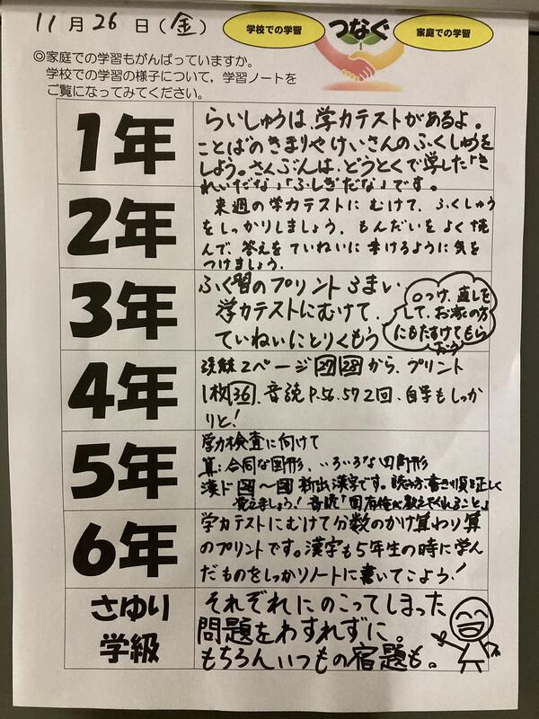 これから、しっかりと二学期のまとめができるように、指導していきます。月曜日はテスト、という学級もあるようです。この休みも、自分の計画で学習できるといいですね。