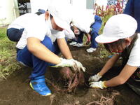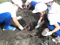 1年生も2年生も力を合わせて,サツマイモの収穫を行いました。