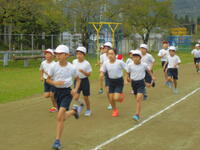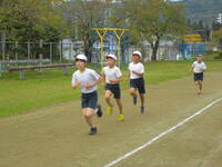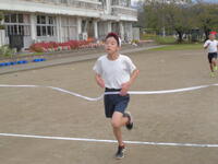 と言って走る児童がいました。全員が完走したマラソン記録会。全員が「負けないぞ」という思いで走ったと思います。
