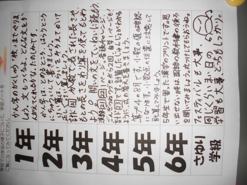 明日はマラソン記録会です。家庭での学習を早めにすませて,ゆっくり休みましょう。