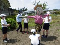 先週2グループになってつくったかかしの名前は,じゃがいもを守るのにふさわしい名前,「ツヨシ」と「ネズコ」です。