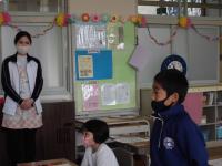 1年生は小学校で初めての英語の時間です。2年生の様子を見ながら,一緒にたのしく学習ができました。