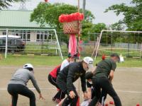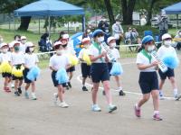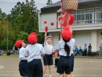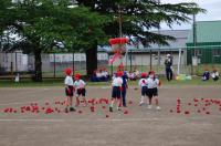 種目ができるようになると,児童にはさらに「もっとがんばろう」「もっと楽しくしよう」という気持ちが見られました。校舎にスローガン「全力で燃え上がれ!56人の勇者達!!」の掲示を作ったり,応援グッズをペットボトルで作ったり,22日に向かっていきました。お家の方に見てほしいという思いがとても強く,雨が降らないように願っていました。