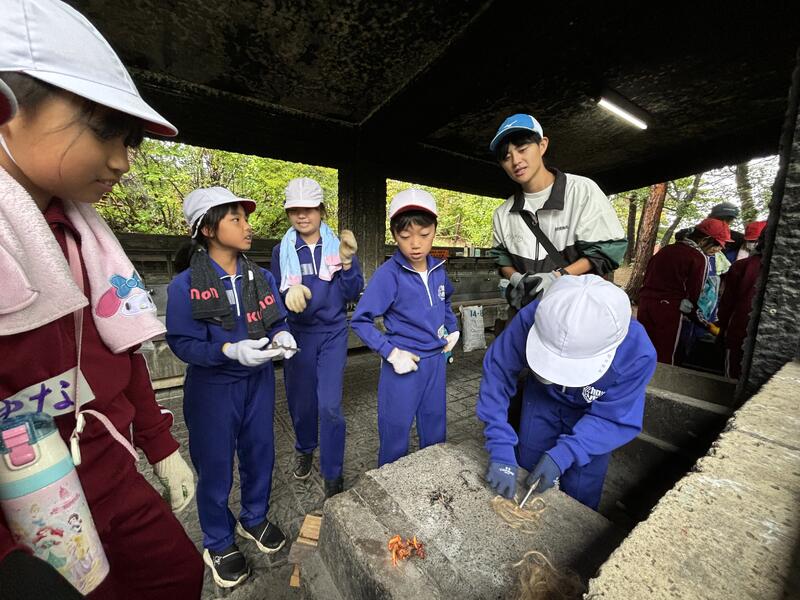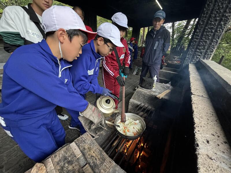宿泊学習通信②火起こし体験から野外炊飯へ
